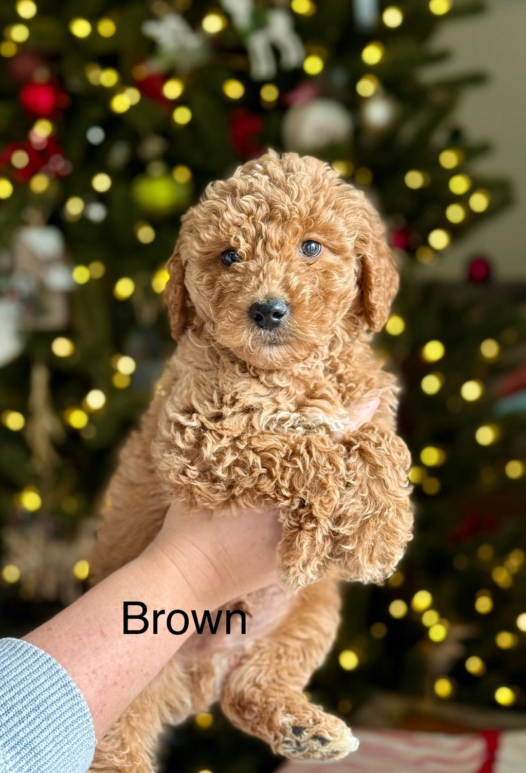 Hot Cocoa is the sweetest boy! He loves people is is so good with young kids. He's used to being snuggled and carried around. He has a super soft, non-shedding beautiful curly red coat. He's available for immediate reservation, or you can come meet him in person! Call or text 916-879-7977